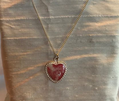 Pink and white marble effect heart shaped pendant formed in a silver coloured back